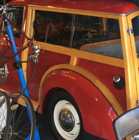 Here is a picture of one that I took when donating a used bike. The man who refurbishes the bikes and then gives them away, restored this Morris Minor Woody in his garage – it’s beautiful!