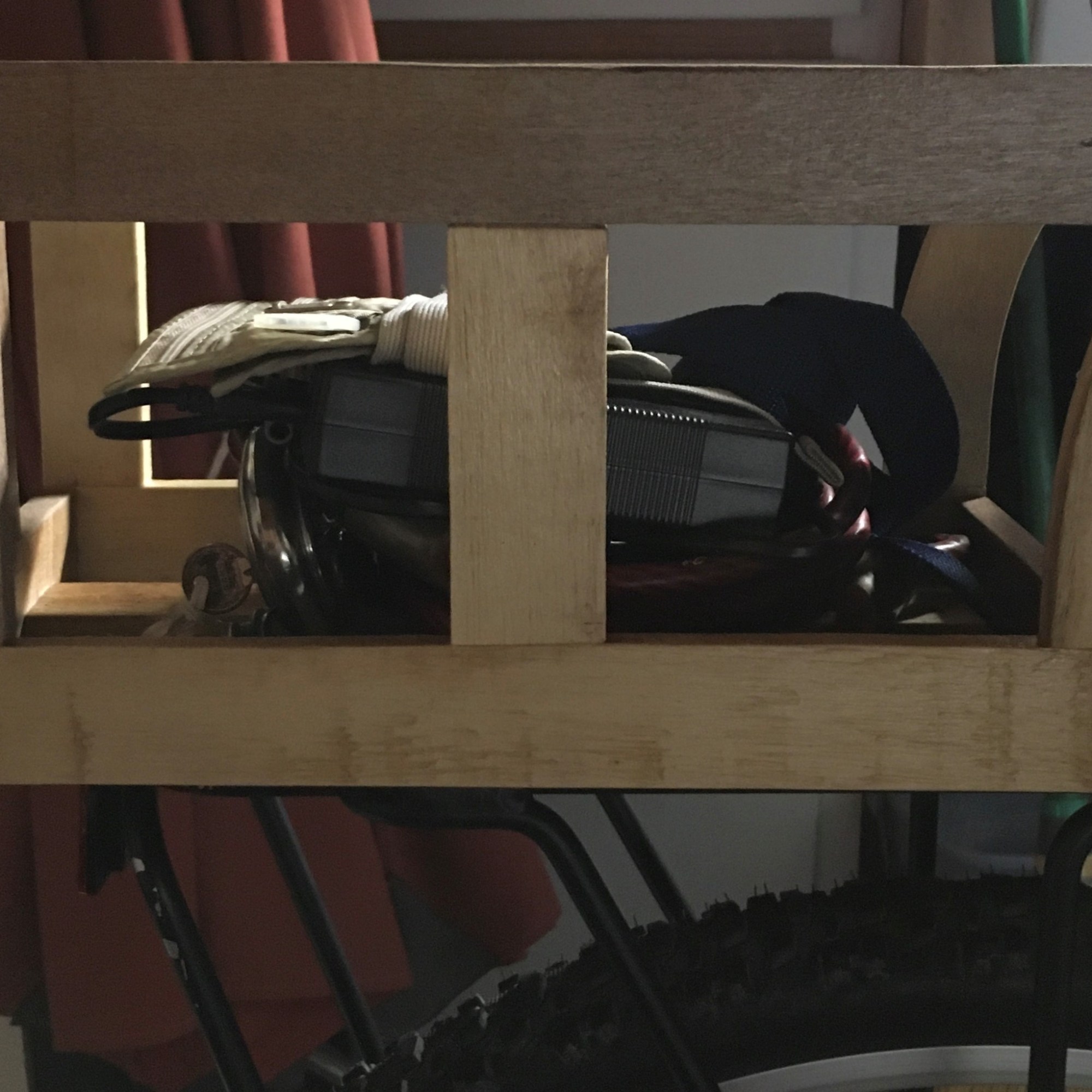 I have always liked cars referred to as Woodies (autos that have wood on the sides), and knowing that I’ll never own one, I decided to make my bike box resemble a woody.