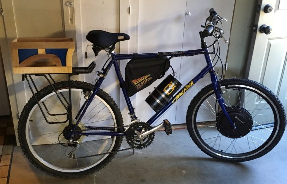 Here is the eBike with box attached and ready to go to the brew pub, I mean shopping.