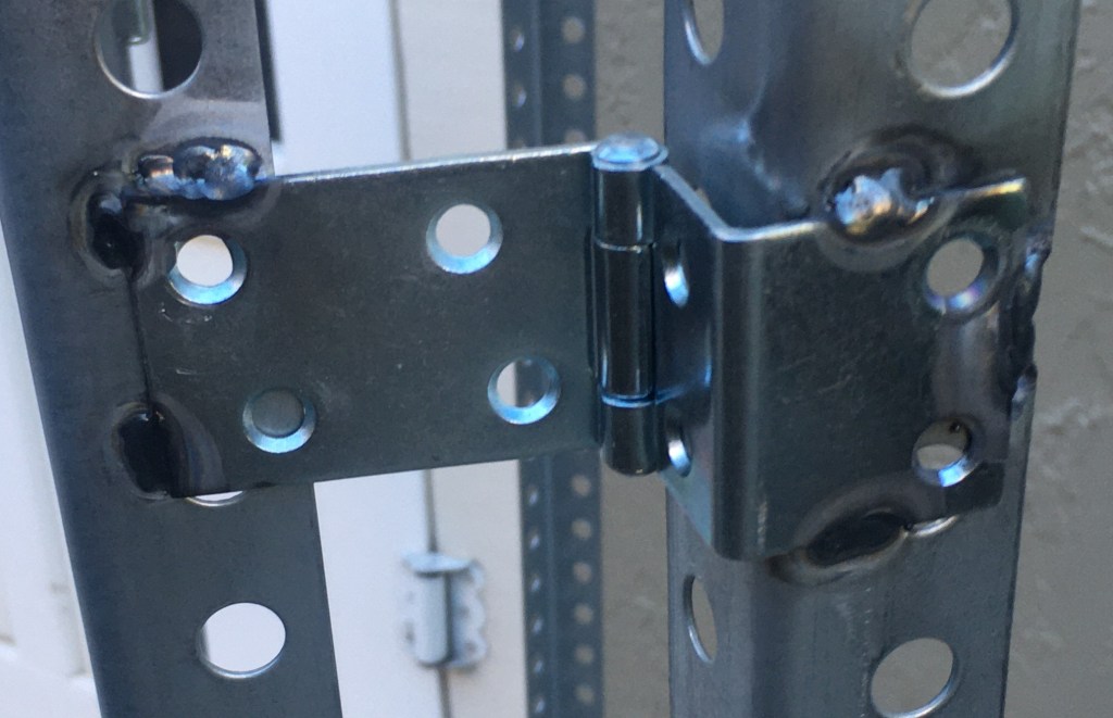 So I called a few shops, and found one that was willing. When I showed him my project he said there are problems. First, the metal is too thin. If welded, some of the metal will burn through – meaning it will be destroyed. Second, the frame metal and hinges are plated, this has to be removed prior to welding. Third, the frame metal and hinges are two different types of metal and will heat up at different temperatures, making a good weld difficult.