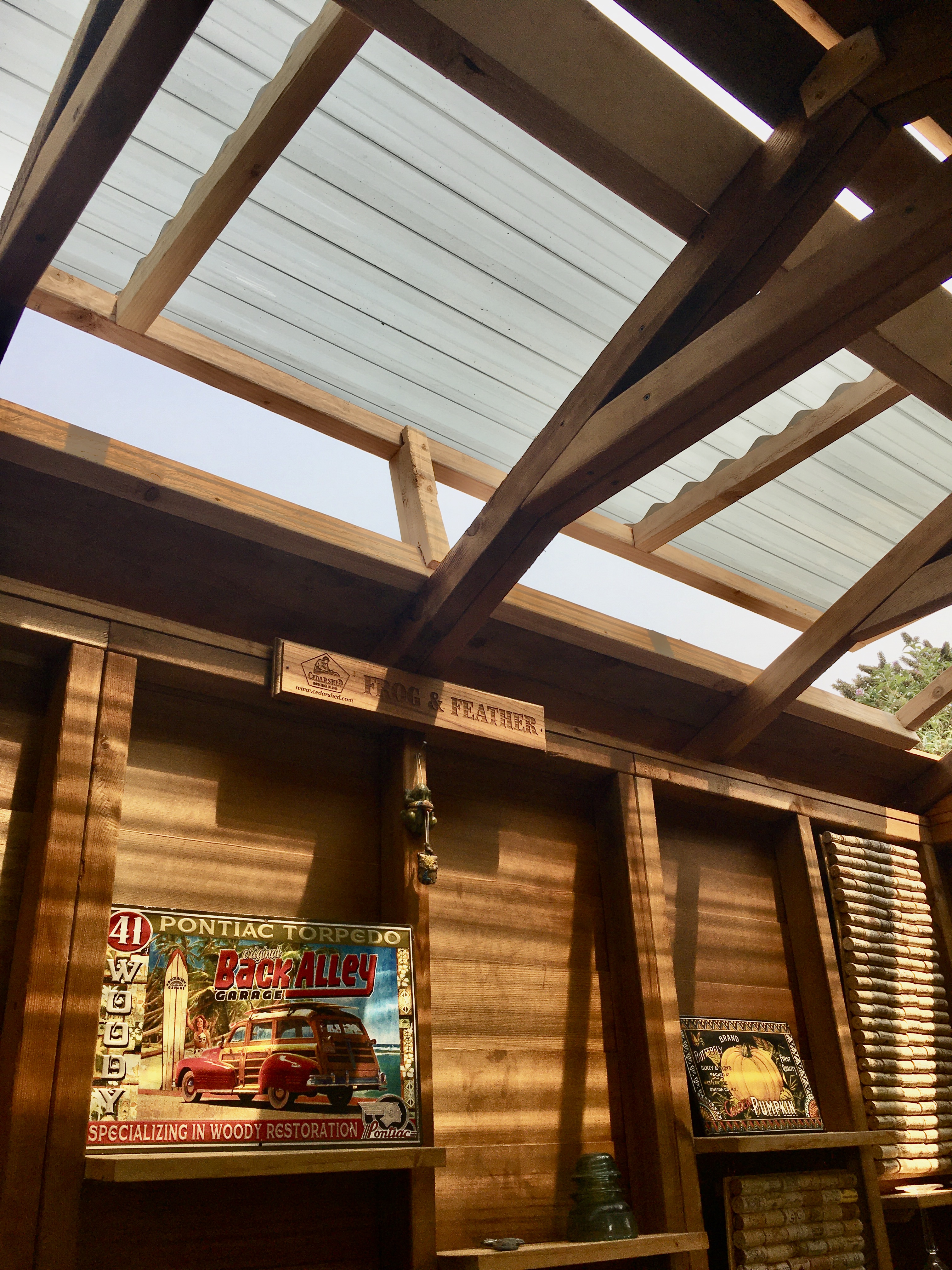 Once the back side of the roof shingles were removed, I tore off the old tar paper. I decided it was a good time for a break, so I layed down inside the cabana and came up with a simple idea.