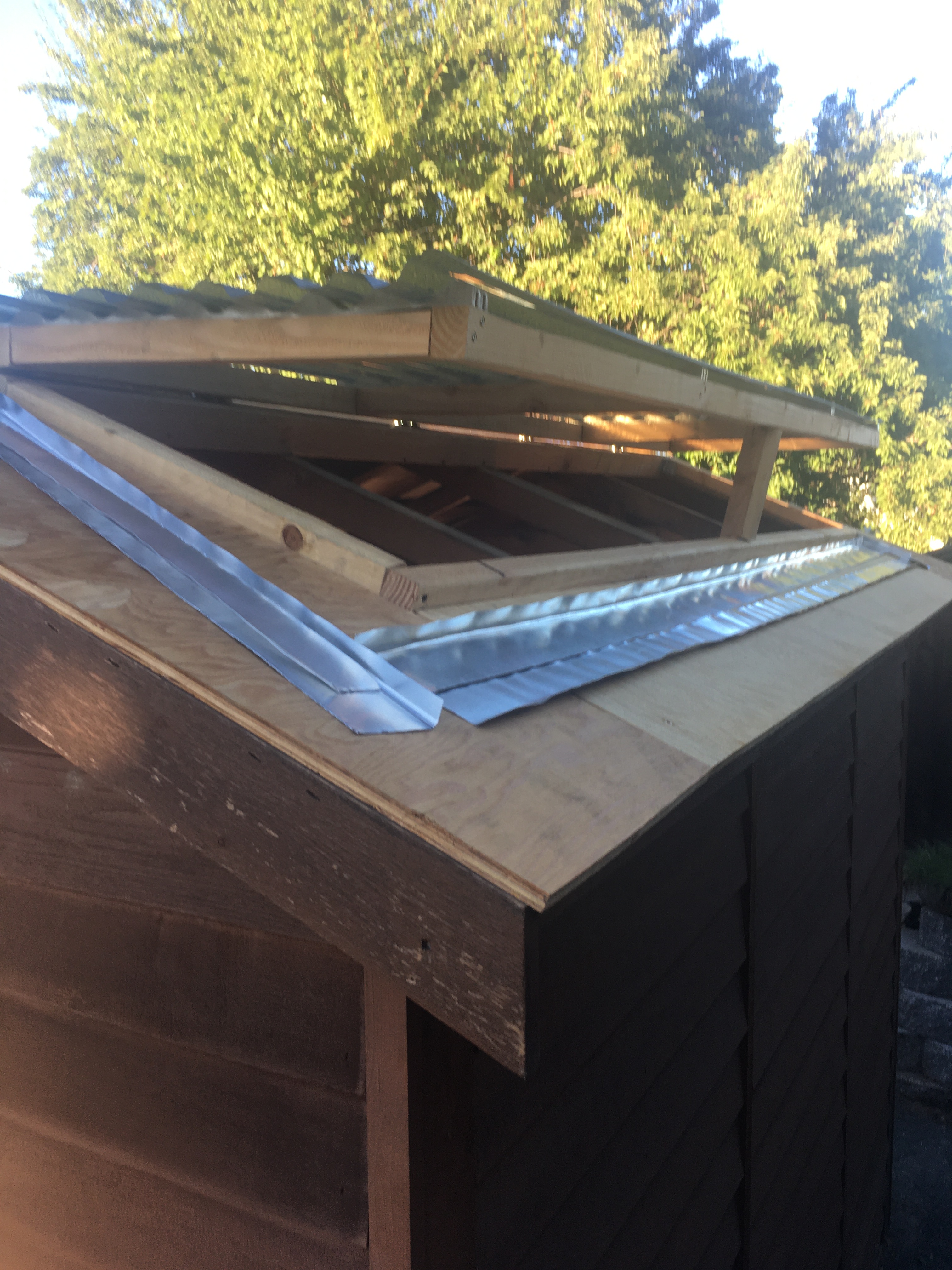 Since I had removed the shingles, I had to sheath the roof with plywood. That job was not too difficult, but the next task was much more challenging.