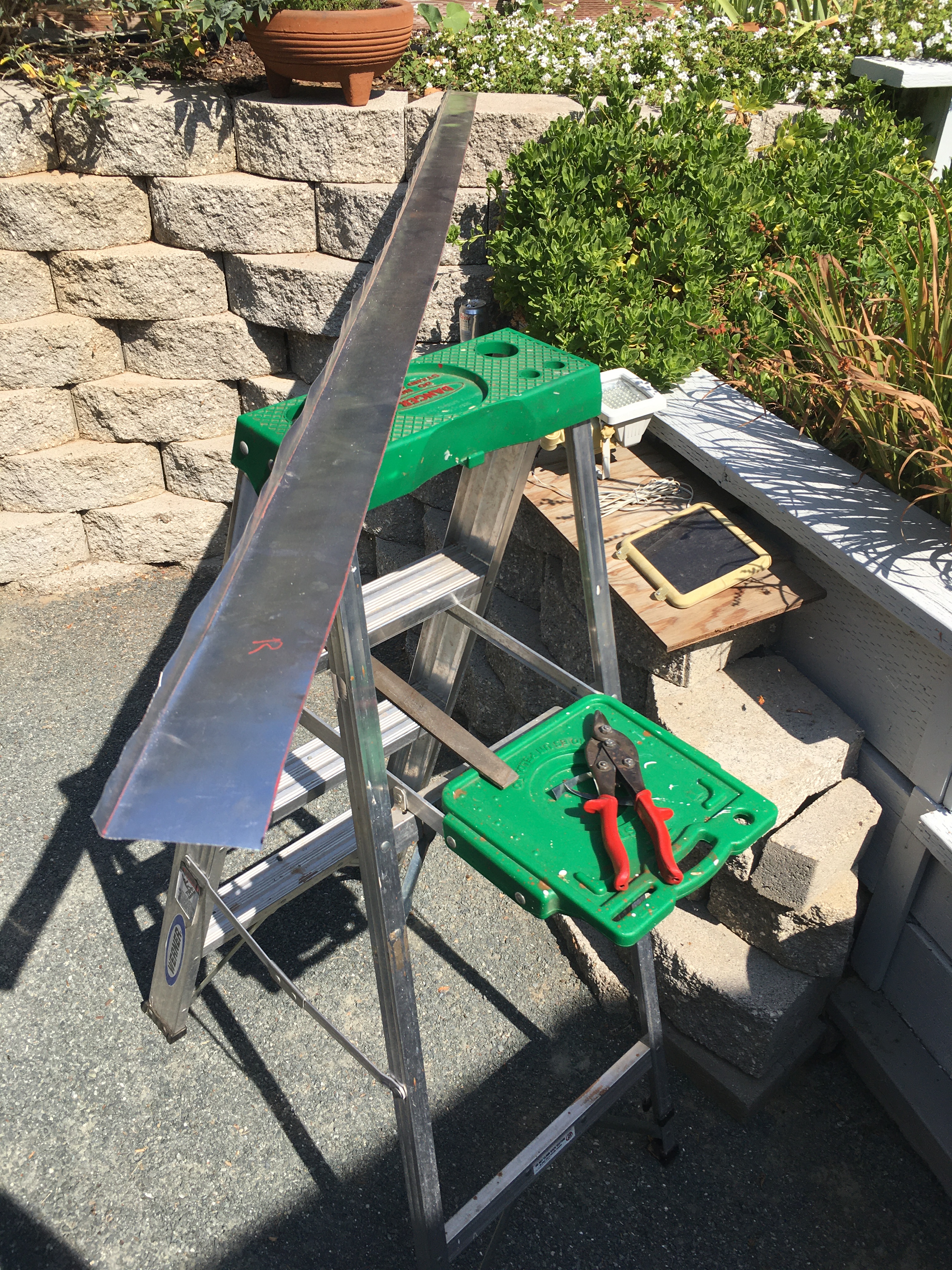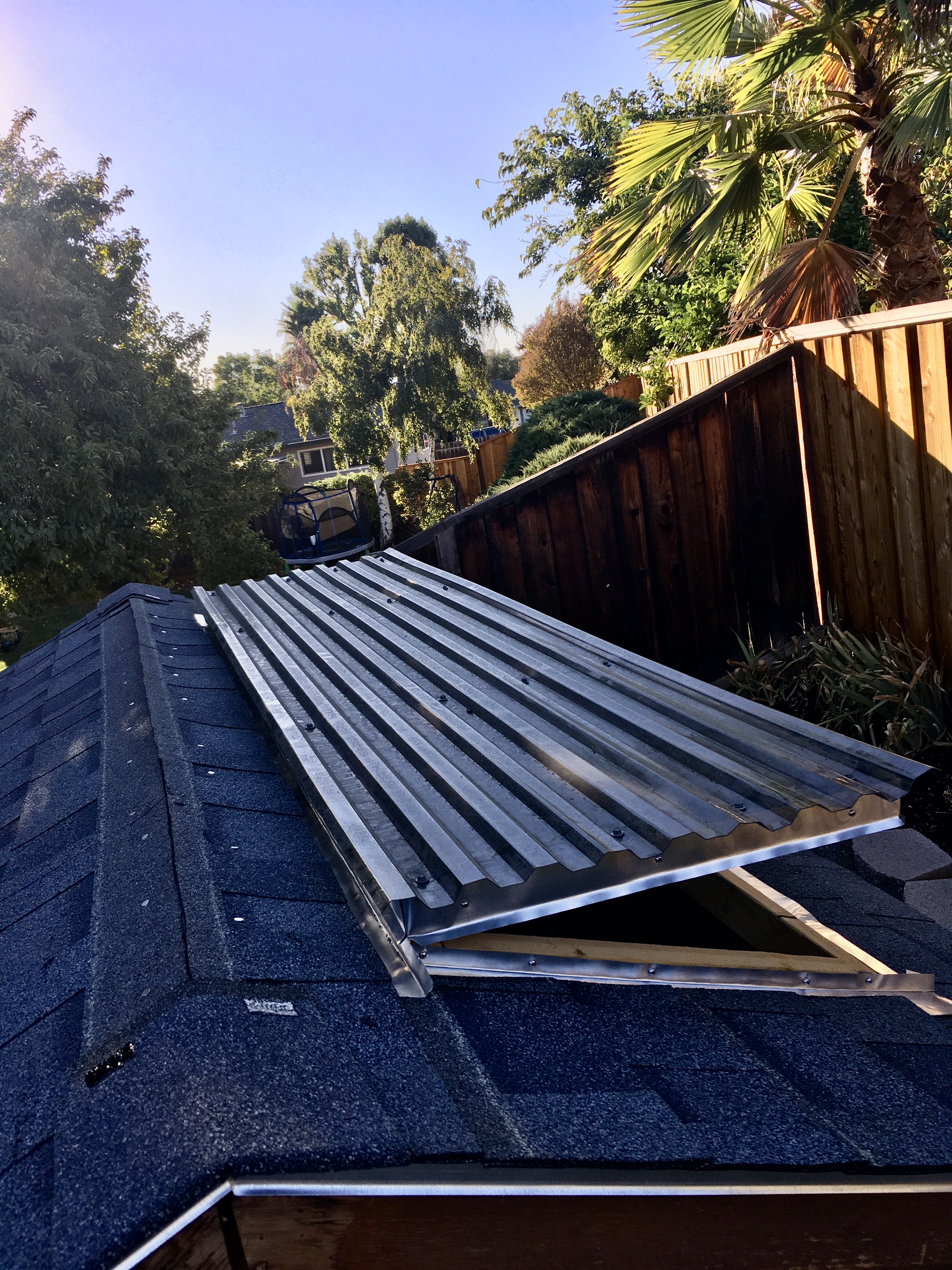 Videos always make things look easy. Since I now had a skylight, I had to flash it with metal to prevent water from seeping in. I bought some rolled aluminum that I would be able to cut with tin snips and bend using my hands and a piece of wood. Not a simple task, and it took me a couple of days to get it all done.