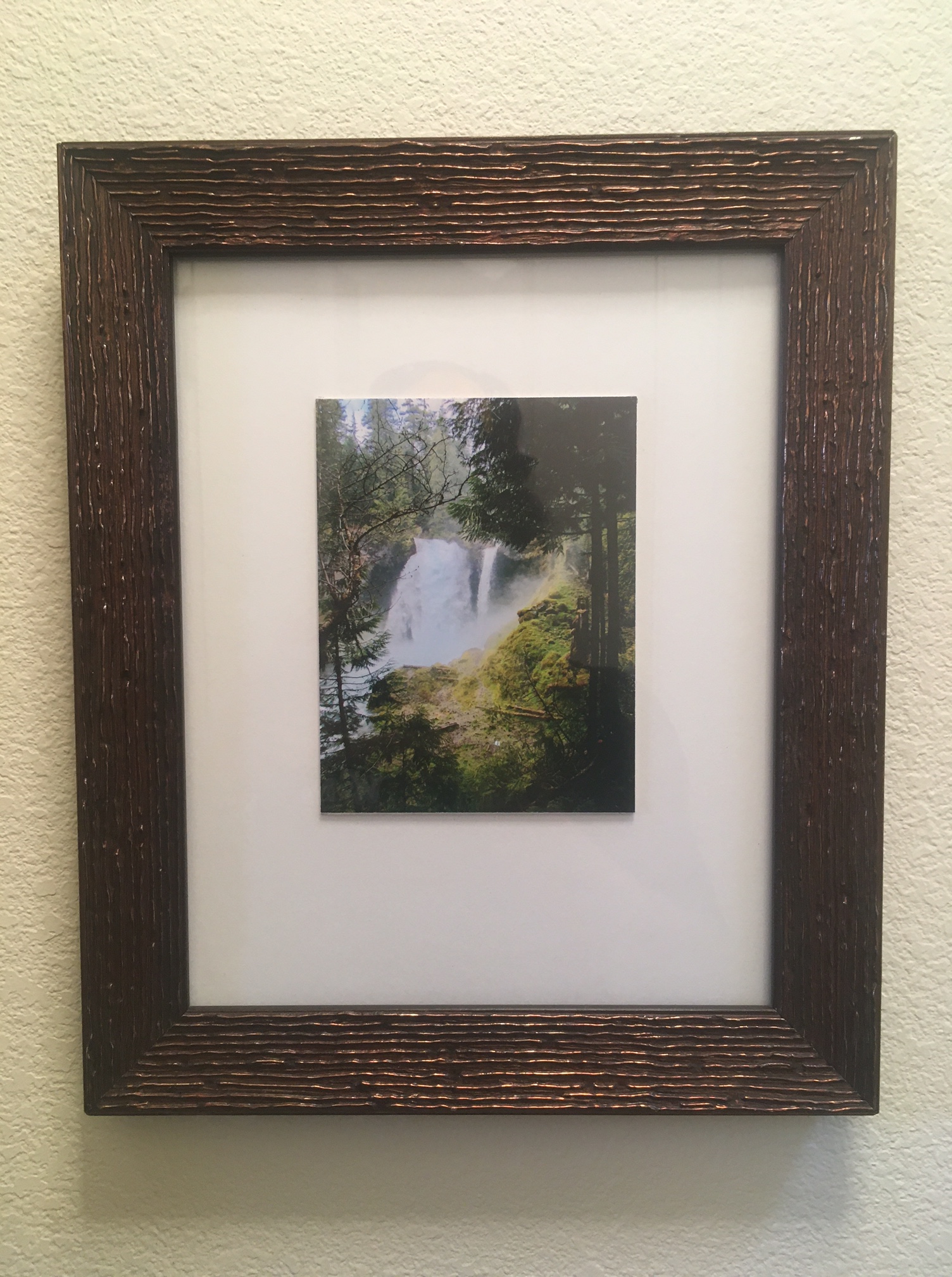 One night, we stayed at a hotel in downtown Ashland, Oregon – a very cool town by the way. The hotel had a lot of old nature postcards of the local area, framed and hanging on the walls. In addition to the old postcard, the designer also added a local leaf from an indigenous tree, which was secured to the frame’s mat. I thought it was a really interesting way to present photos and local flora, and decided to give it a try myself.