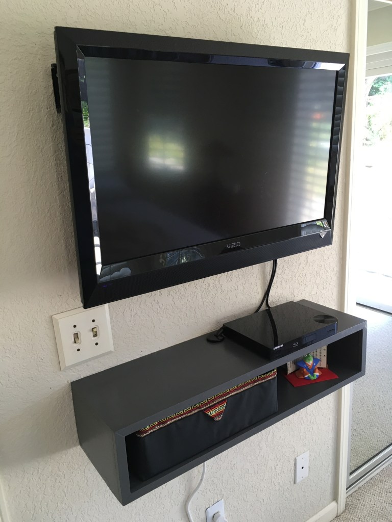 The master bedroom in my house is really on the “small” side of rooms. My first thought was to get rid of the cabinet that the TV sat on. That would certainly make the room look bigger. I’d hang the TV on the wall and build a floating shelf for the DVD player and the controllers.