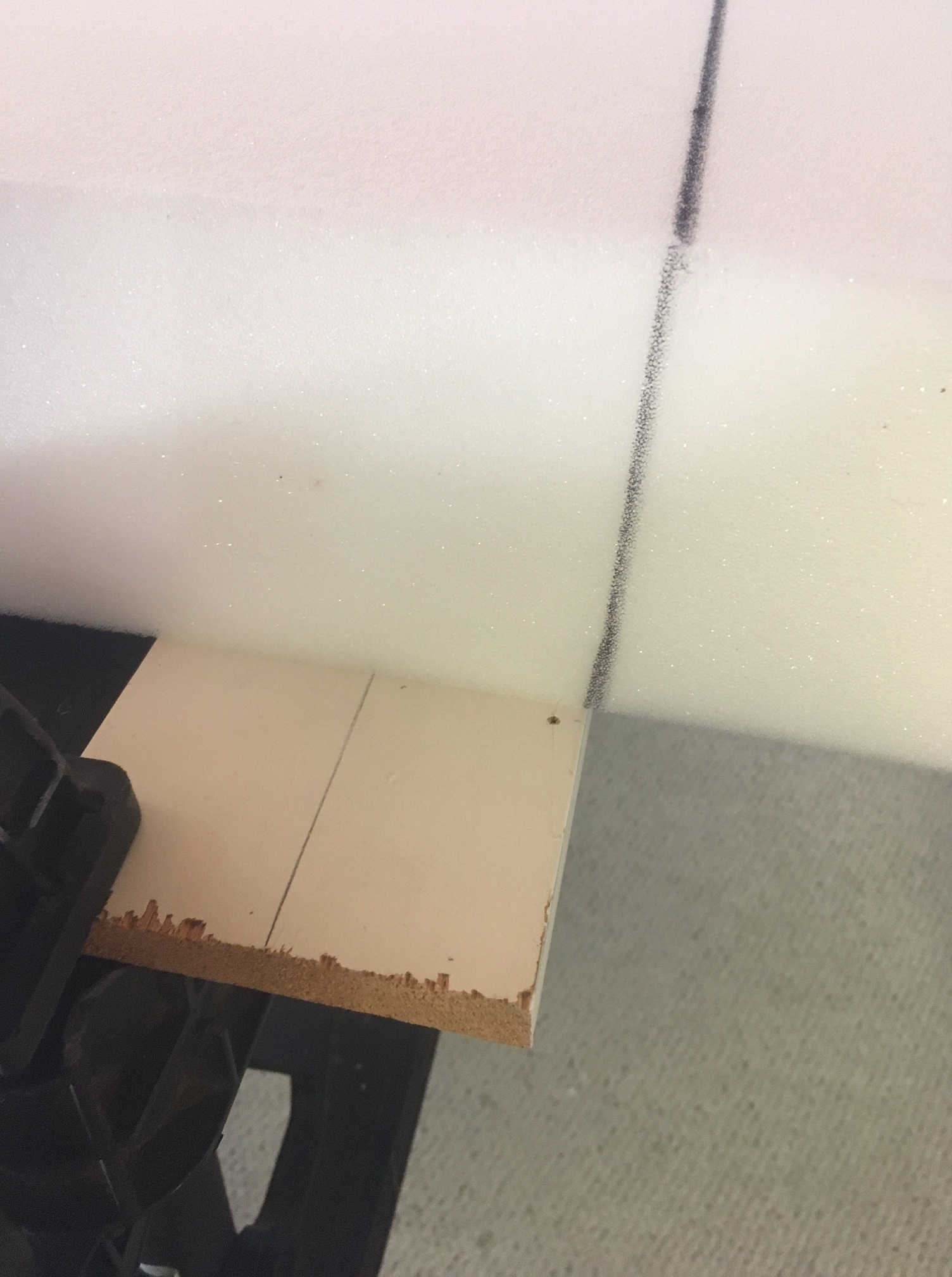 I decided I needed a guide on the underside of the foam. This would ensure that the knife remained straight while cutting.