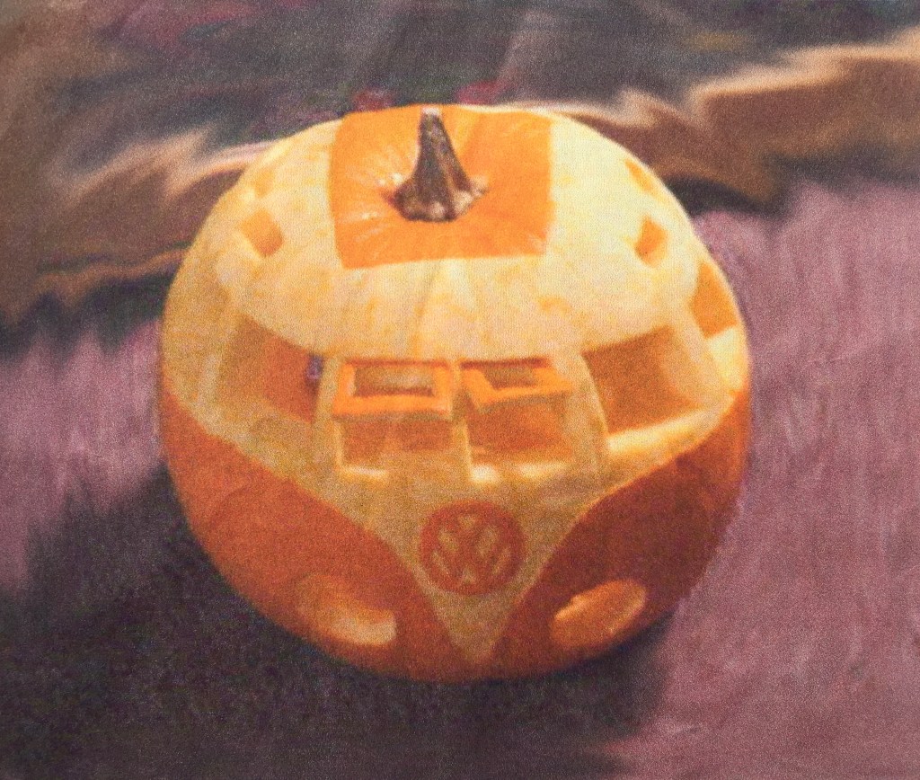 For many years at work, we used to have pumpkin carving contests. The VW bus was one of my entries. I found this design on line and copied it.