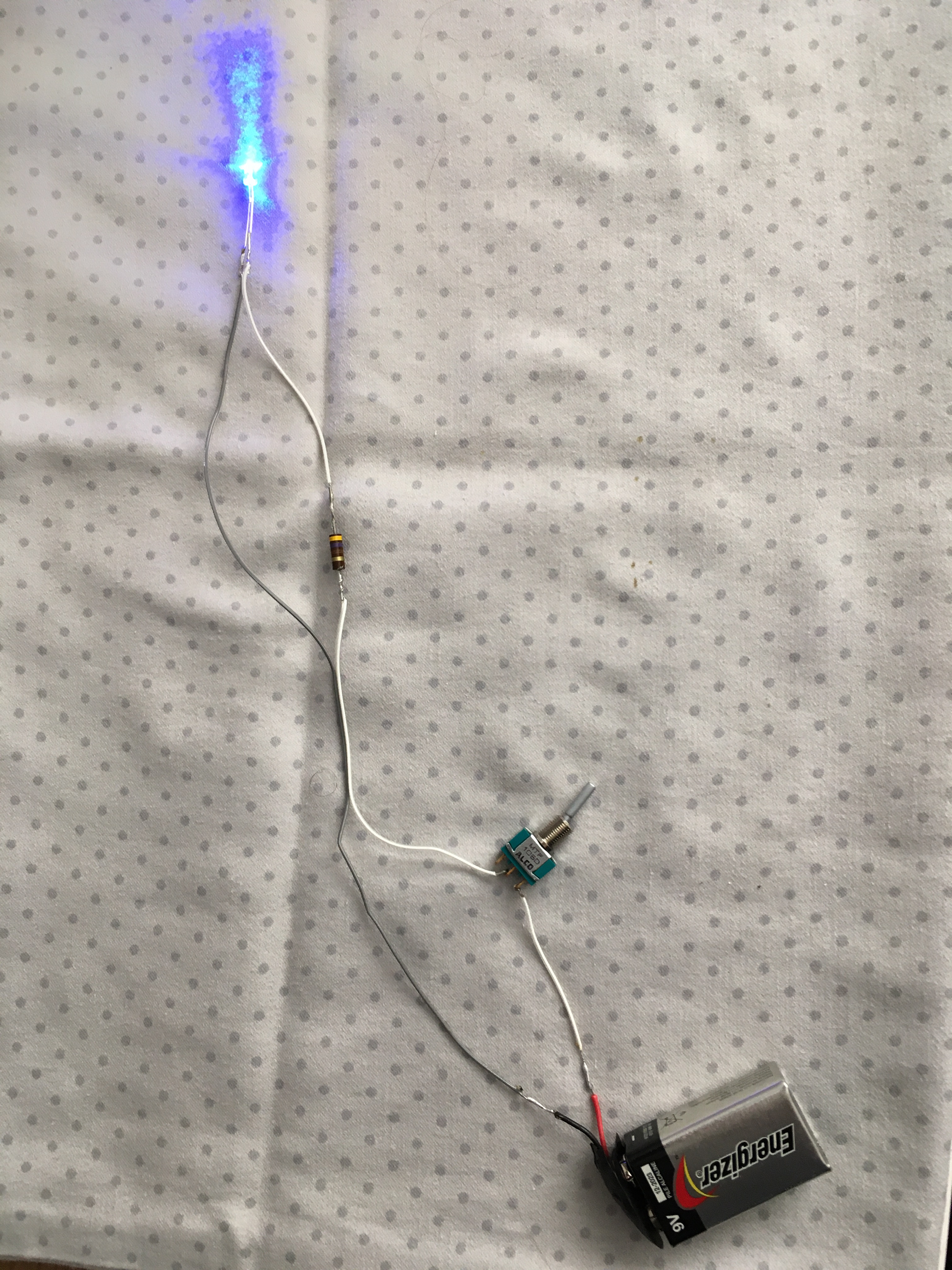 The only parts needed are an LED, a resistor, a switch, some wire and a battery. The LED is a Light Emitting Diode. The resistor limits the current from the battery, preventing the diode from burning out.