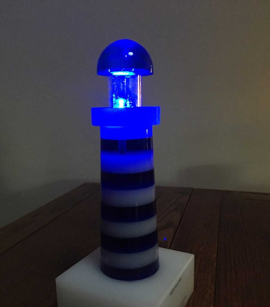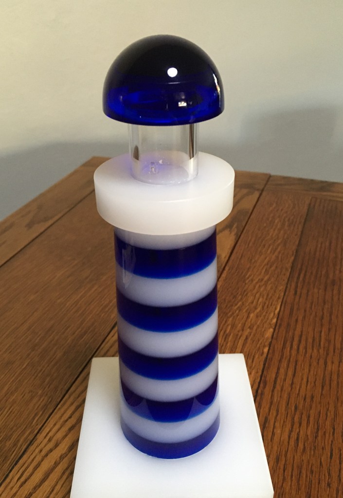 I fully expected that the lighthouse award would actually light up – but it did not. Well, the award went on the shelf and there it remained for years.