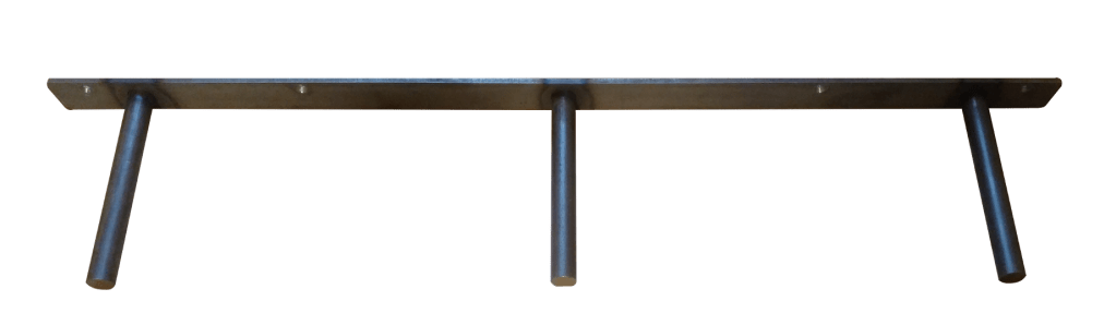 I decided to use the type of bracket shown below. A 2′ wide length of steel with the mounting posts for the shelf already welded in place. I figured all I’d have to do is level them out, and use toggle straps to mount the brackets to the wall.