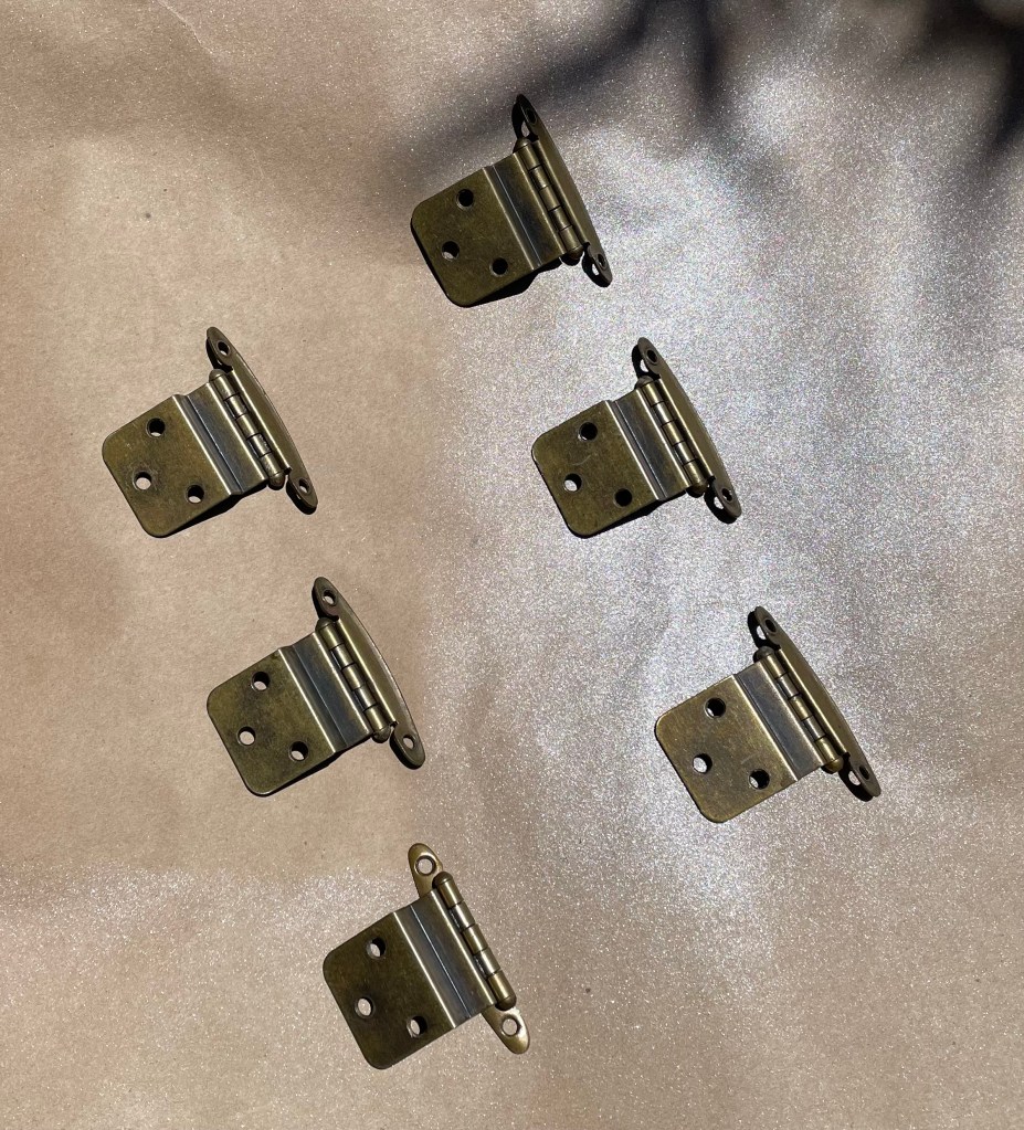 To clean the hinges, I use a solution of warm water, baking soda, and a toothbrush. I just scrub the hinge up, rinse and let dry. I also cleaned the hinge screws in the same manner.