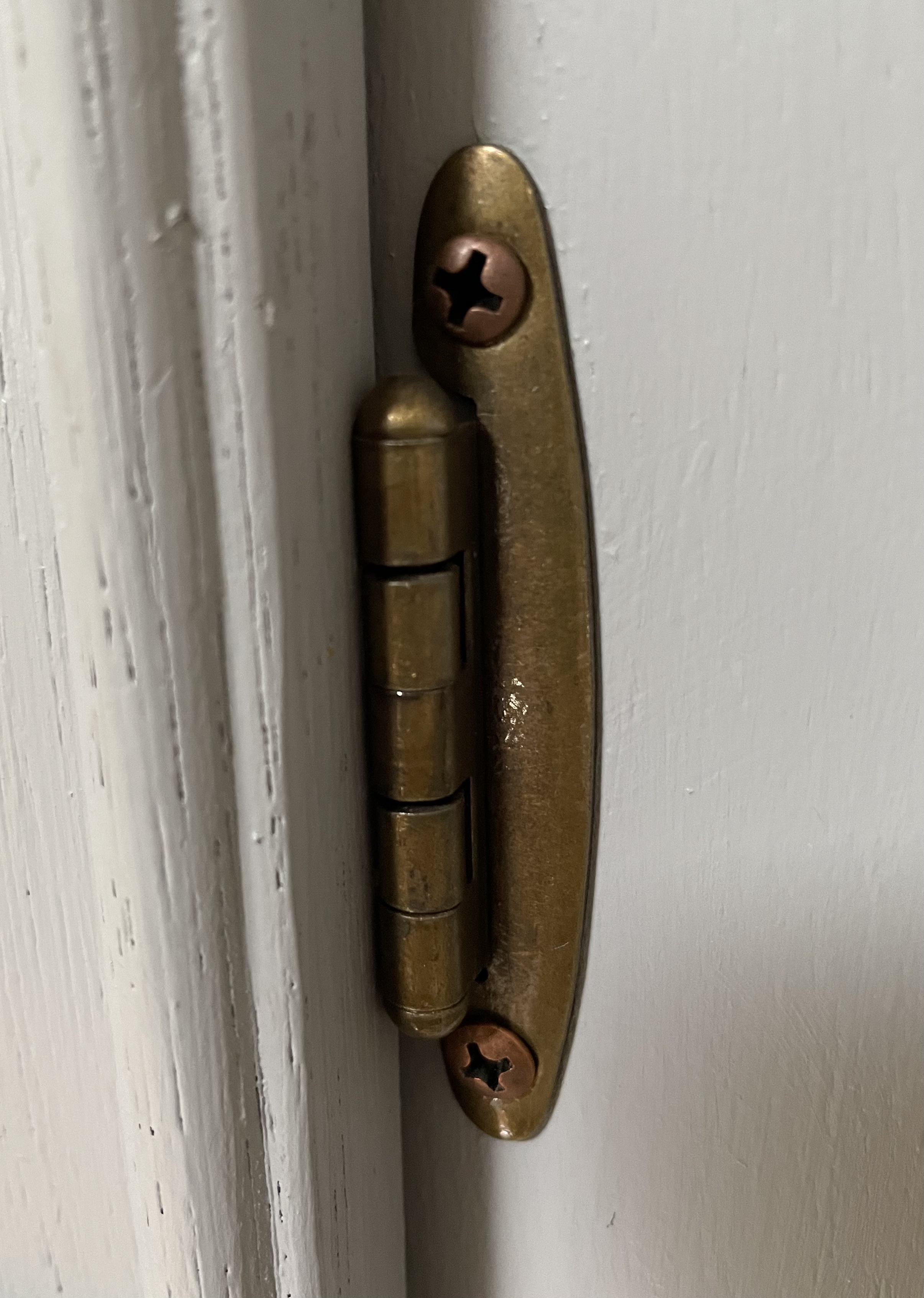 In my case, the hinges had not been previously painted over, so they only needed a minor cleaning to remove years of dust and kitchen grime.