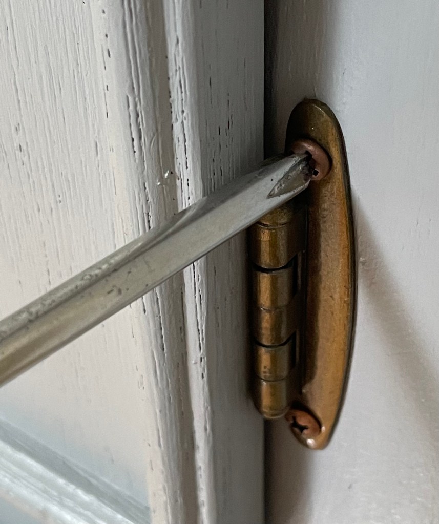 If the hinge has been previously painted over, search the web for advice and videos. I saw several good ones that ‘heated’ up the hinge on the stove to loosen up the paint.