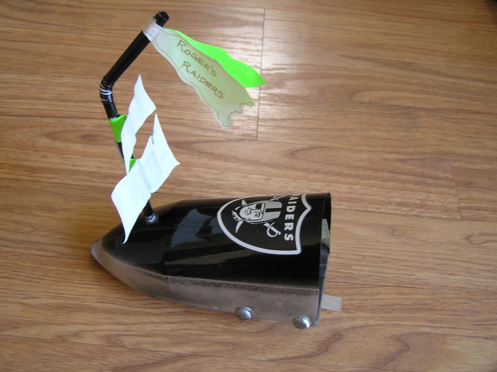 I painted the boat silver and black, as one of my team mates was a Raiders fan.