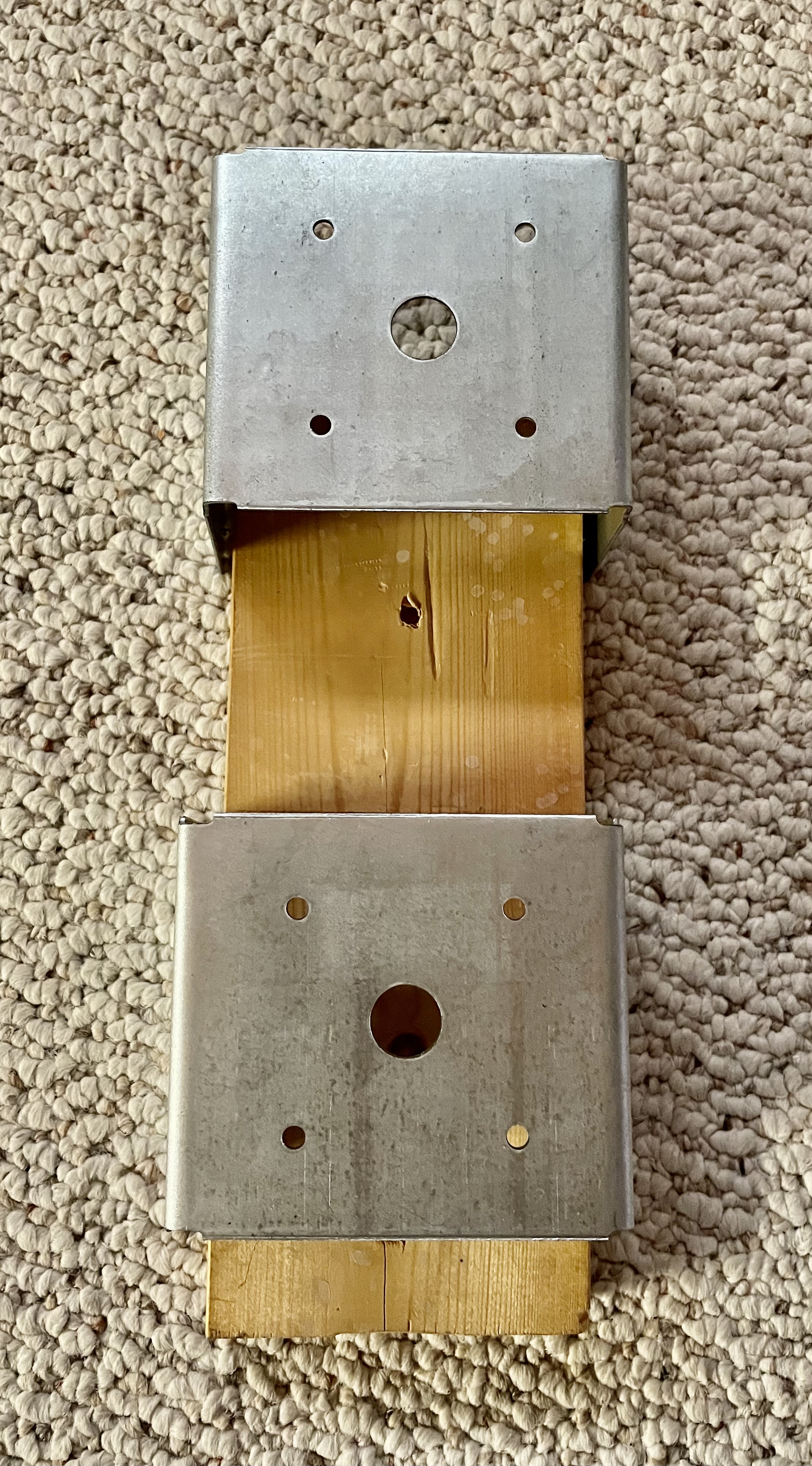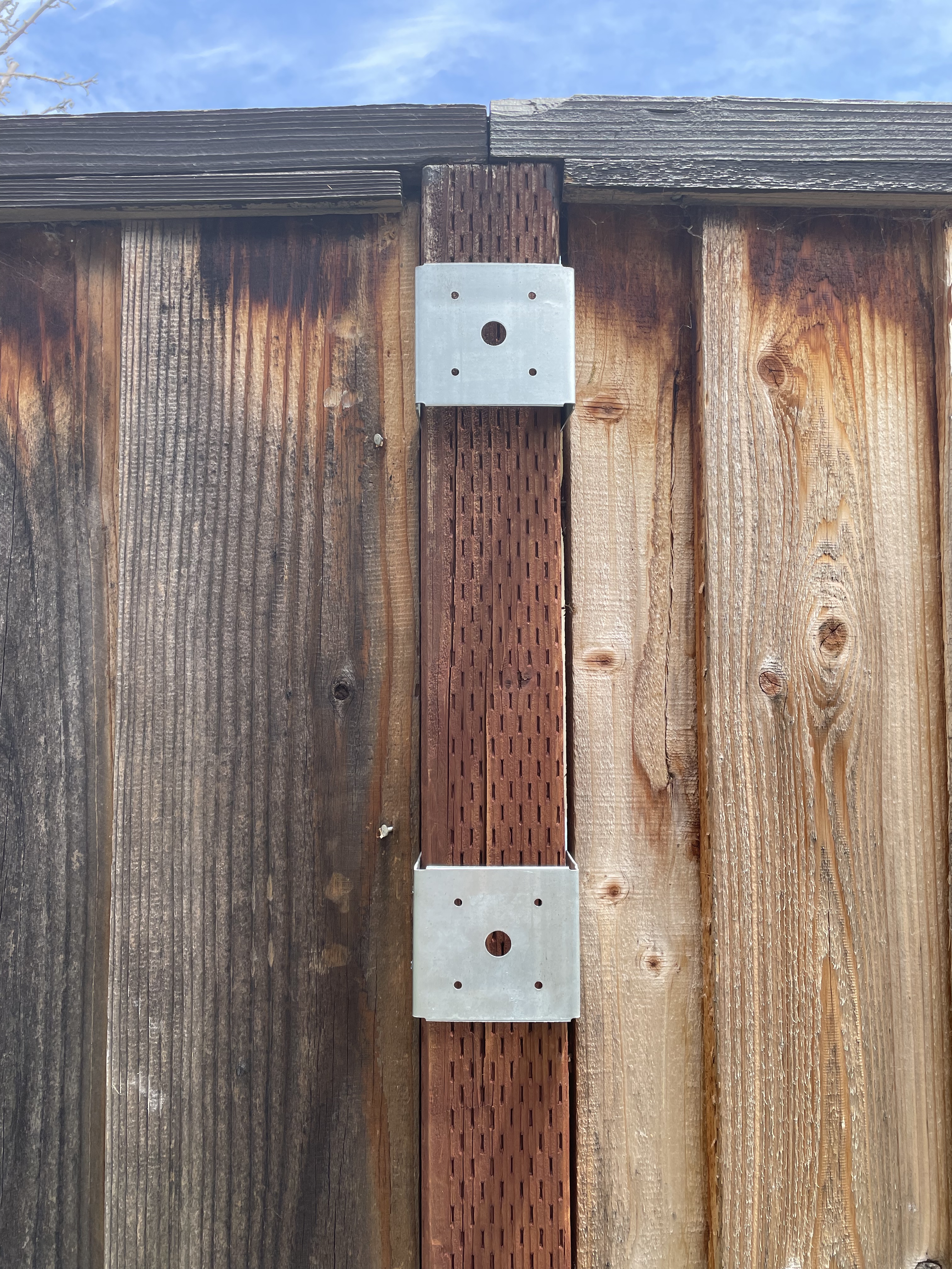Using hinges was not difficult, but ‘how to’ support the toppers needed an idea. I decided to use fence U-brackets, and slide a piece of flat wood into the bracket, and secure that to the topper. I will use a heavy duty tie wrap, which can easily be removed as required.