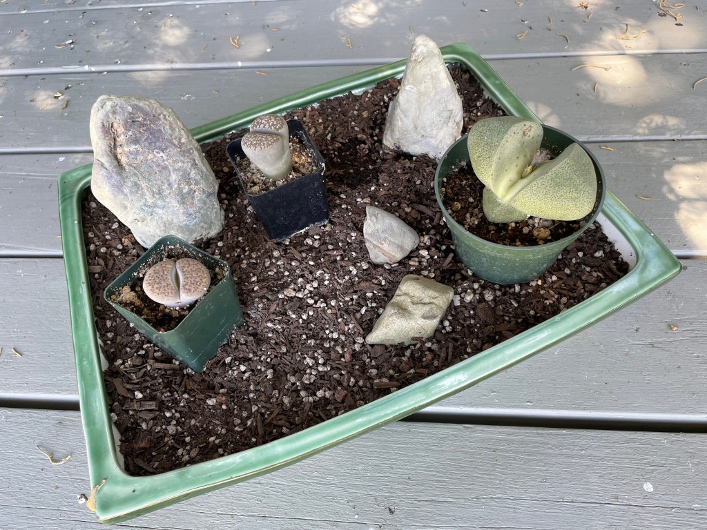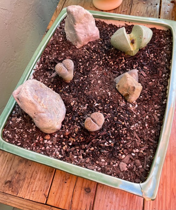 I chose two Lithops, and one Pleiospilos nelii mesembs succulent plants.