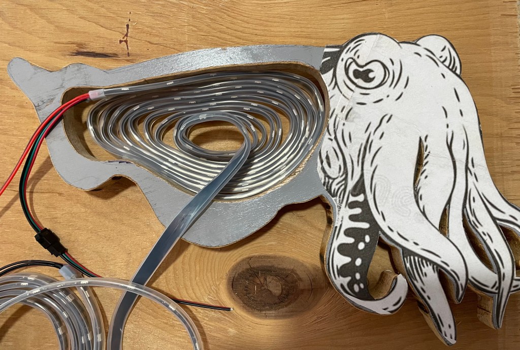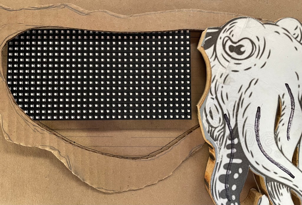 My display area is smaller (due to the size of the LED board, but that is an easy fix. I’ll just make the cuttlefish display area a bit smaller.