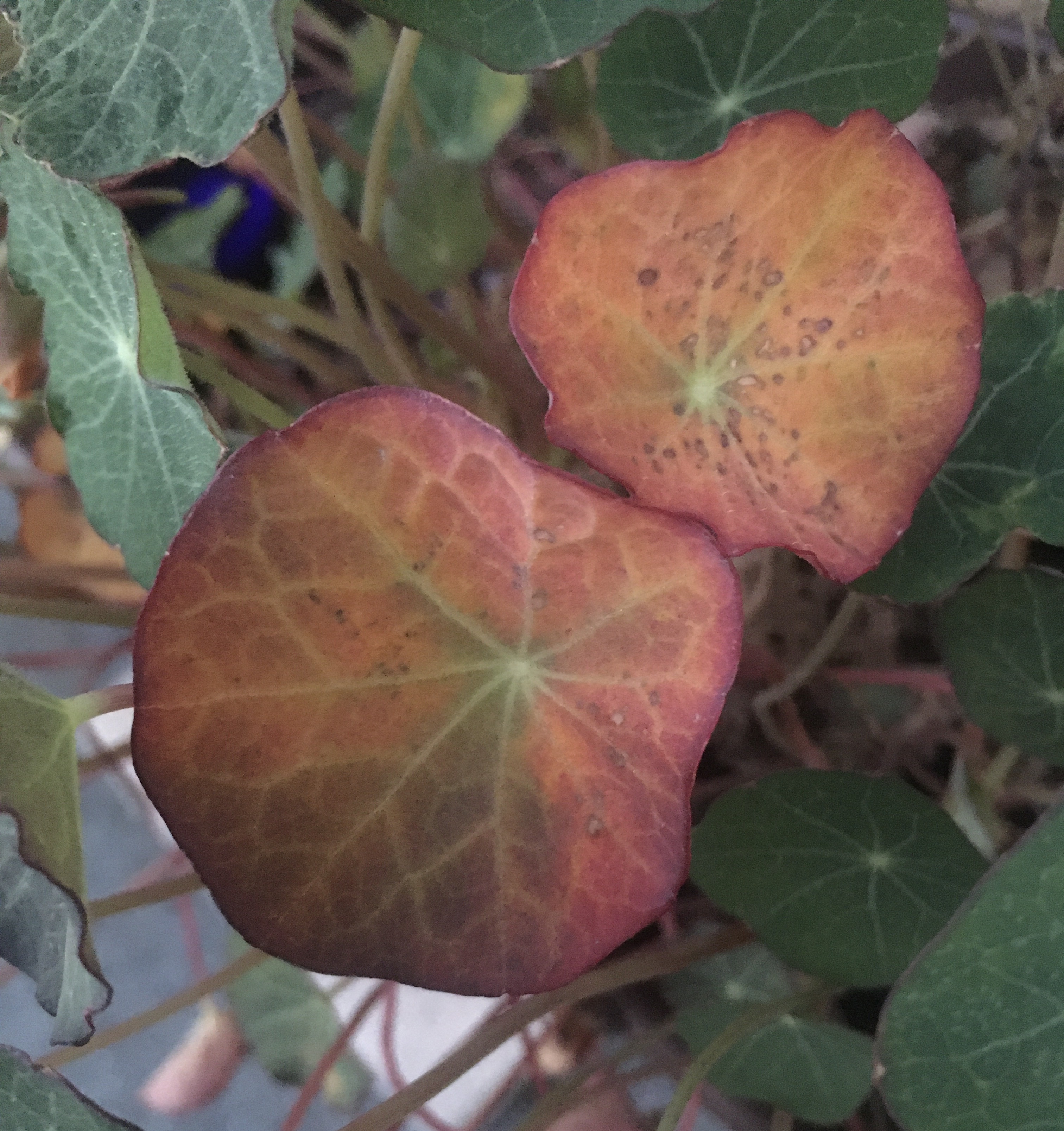 Having worked with eye care instrumentation for many years, the leaf of the nasturtium always reminded me of the retina of the eye. Hence the name of this post – ‘The Eye Of The Nasturtium.’