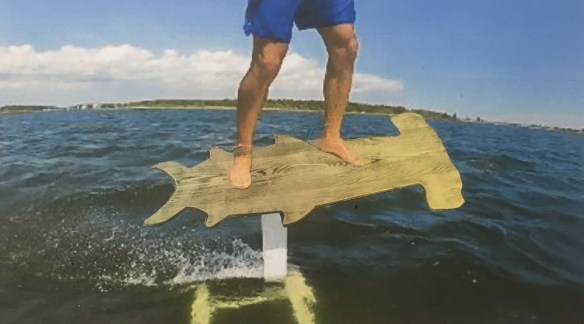 Then it hit me, add a hydrofoil wing to the bottom of the board. If I could add the wing, I could literally fly above the water on the back of a hammerhead shark – a dream come true!