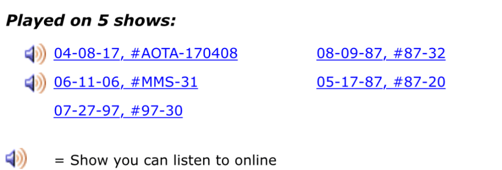 The song was first played on Dr. D’s show in May of 1987, and was played another four times.